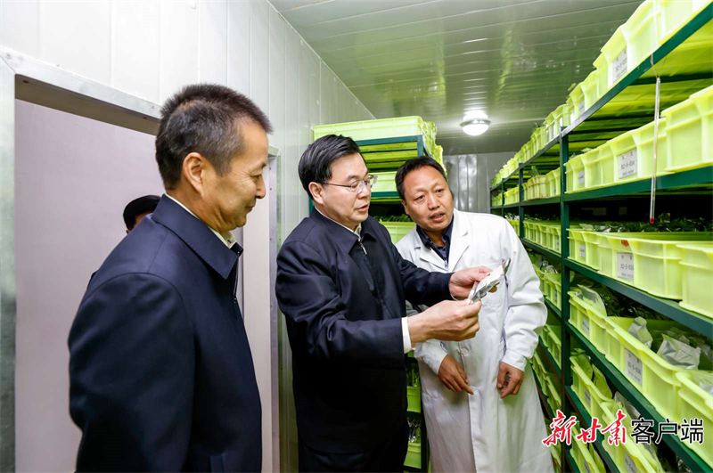 胡昌升強(qiáng)調(diào),省農(nóng)科院要牢牢把握農(nóng)業(yè)現(xiàn)代化方向,始終堅持“科技為民”,圍繞農(nóng)業(yè)生產(chǎn)全鏈條、全要素加強(qiáng)科技攻關(guān)和創(chuàng)新,在良種繁育、土壤改良、病蟲害防治、防災(zāi)減災(zāi)、農(nóng)產(chǎn)品精深加工等方面下更大功夫,推動成果轉(zhuǎn)化和產(chǎn)業(yè)化應(yīng)用,為農(nóng)業(yè)強(qiáng)省建設(shè)提供科技支撐。要加強(qiáng)科技人才培養(yǎng),做好農(nóng)業(yè)技術(shù)推廣,把論文寫在隴原大地上、把成果體現(xiàn)在推動鄉(xiāng)村振興上,在促進(jìn)農(nóng)業(yè)增效、農(nóng)民增收、農(nóng)村發(fā)展中建功立業(yè)。
