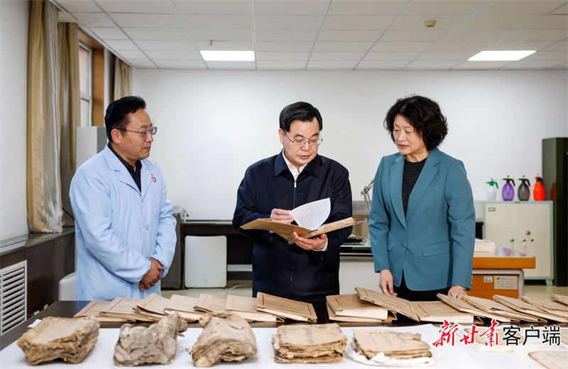 胡昌升強(qiáng)調(diào),省檔案館要加強(qiáng)檔案治理和檔案資源、利用、安全體系建設(shè),加大專業(yè)人才培養(yǎng)力度,創(chuàng)新工作理念方法,不斷提高檔案工作現(xiàn)代化水平。要堅持“應(yīng)歸盡歸、應(yīng)收盡收”,全面做好檔案的收集管理,強(qiáng)化風(fēng)險管控,確保檔案實體安全和信息安全,記錄好、留存好中國式現(xiàn)代化偉大進(jìn)程的“甘肅記憶”。要加快檔案管理數(shù)字化、智能化建設(shè),深入挖掘檔案資源價值,提升檔案資政服務(wù)、公共服務(wù)、文化教育能力。