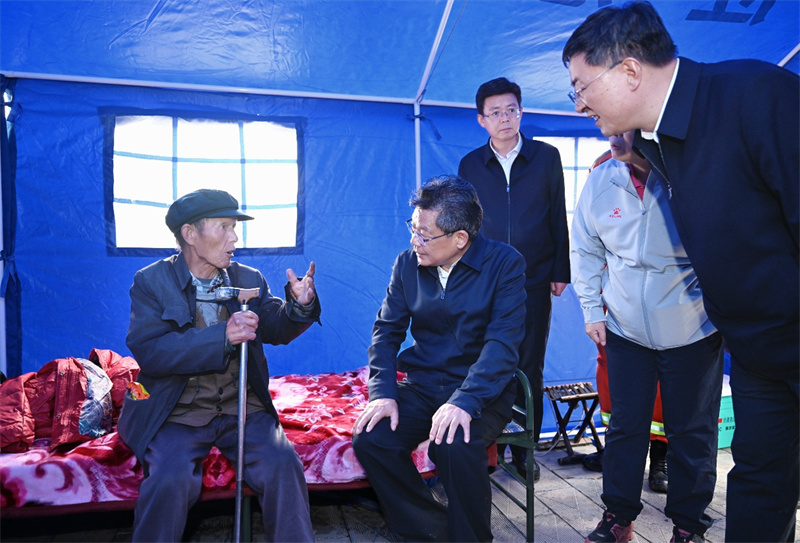 在文峰鎮(zhèn)樺林村,任振鶴深入震中,實(shí)地察看房屋、道路等受損情況,來(lái)到安置點(diǎn)看望受災(zāi)群眾,隨后在臨時(shí)指揮部主持召開(kāi)會(huì)議,與省軍區(qū)、省直相關(guān)部門及定西市、隴西縣、文峰鎮(zhèn)等負(fù)責(zé)同志進(jìn)行會(huì)商研判,安排部署下一步工作。他指出,地震發(fā)生后,各級(jí)各相關(guān)部門聞“震”而動(dòng)、行動(dòng)迅速,第一時(shí)間開(kāi)展抗震救援、排險(xiǎn)除險(xiǎn)工作,奠定了重要基礎(chǔ)。要堅(jiān)持“省級(jí)指導(dǎo)、市縣統(tǒng)籌、各方支持、群眾參與”,強(qiáng)化統(tǒng)一調(diào)度,落實(shí)責(zé)任、整合資源,以科學(xué)有效的指揮、周密完備的部署,繼續(xù)做好抗震救災(zāi)各項(xiàng)工作。要全面排查風(fēng)險(xiǎn)隱患,加強(qiáng)余震監(jiān)測(cè)預(yù)警,聚焦農(nóng)房、學(xué)校、養(yǎng)老院、衛(wèi)生院、水庫(kù)、道路、工礦、橋涵、地質(zhì)災(zāi)害點(diǎn)等可能受地震影響的重點(diǎn)部位,不漏一戶、不落一處,早發(fā)現(xiàn)、早處置,有安全風(fēng)險(xiǎn)的及時(shí)轉(zhuǎn)移,嚴(yán)防發(fā)生次生災(zāi)害。要妥善安置受災(zāi)群眾,按照“五有”要求保障好群眾基本生活,讓受災(zāi)群眾感到踏實(shí)、安穩(wěn)、溫暖。要搶通保暢基礎(chǔ)設(shè)施,緊盯水、電、路、訊,全力做好排查搶修等工作,推動(dòng)盡快恢復(fù)正常生產(chǎn)生活秩序。要迅速開(kāi)展抗災(zāi)自救,用好各方救援力量,引導(dǎo)動(dòng)員群眾做好農(nóng)房修復(fù)、廢墟清理等工作。要切實(shí)增強(qiáng)抗震意識(shí),進(jìn)一步完善應(yīng)急預(yù)案,加強(qiáng)防震減災(zāi)安全知識(shí)宣傳,不斷提升群眾防災(zāi)減災(zāi)意識(shí),減少災(zāi)害帶來(lái)的人身安全、經(jīng)濟(jì)財(cái)產(chǎn)損失。