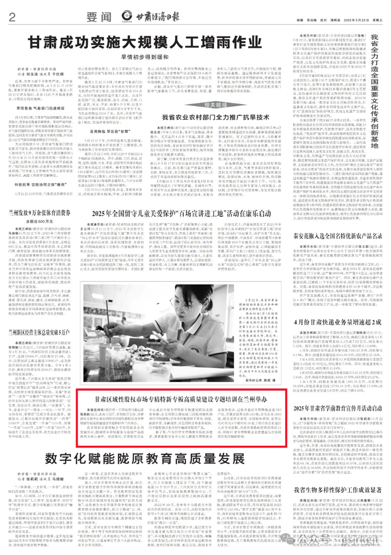 甘肅區(qū)域性股權(quán)市場專精特新專板高質(zhì)量建設(shè)專題培訓(xùn)在蘭州舉辦