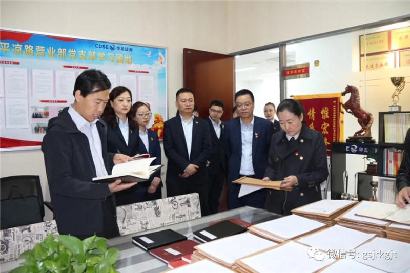 考核組還對金控集團華龍證券2020年度黨建工作責任制落實情況進行了民主測評、個別談話,查閱了黨建基礎資料,并對金控集團辦公室、金控擔保集團、華龍證券蘭州平涼路營業(yè)部等基層黨組織黨建工作情況進行了現場檢查。