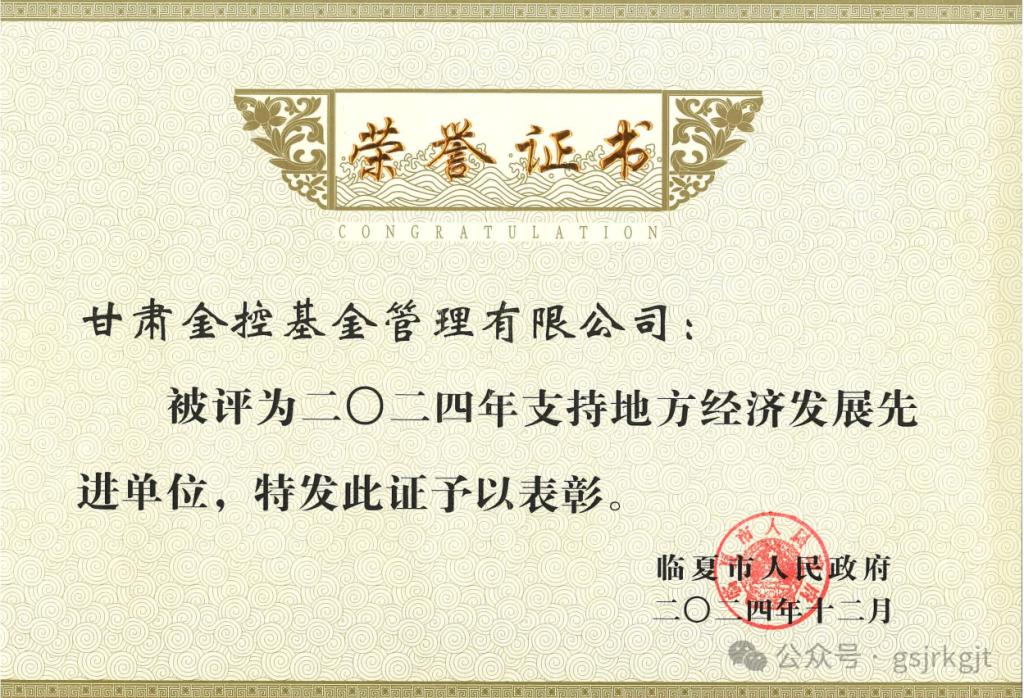 企業(yè)動(dòng)態(tài) | 金控基金榮獲“2024年度支持地方經(jīng)濟(jì)發(fā)展先進(jìn)單位”榮譽(yù)稱號(hào)